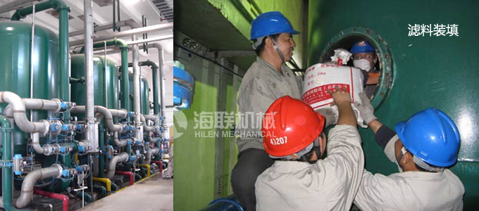樹脂在未裝進(jìn)交換器之前,首先應(yīng)進(jìn)行篩選,再用百分之8~10的NaCI溶液浸泡20小時(shí),放掉食鹽水,用水沖洗樹脂,自至出水不呈黃色為止;蛴冒俜种5的 HCI溶液浸泡2~4小時(shí),放掉酸液后,用水沖洗樹脂至排水接近中性為止。將樹脂裝入設(shè)備到規(guī)定高度,樹脂裝好后進(jìn)行一次反沖洗。
